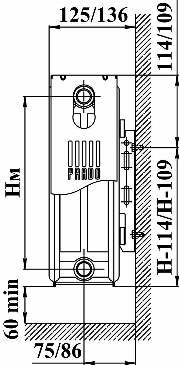 Радиатор PRADO Classic 22х300х600 (906Вт) панельный, сталь, 1 секция 00000000899