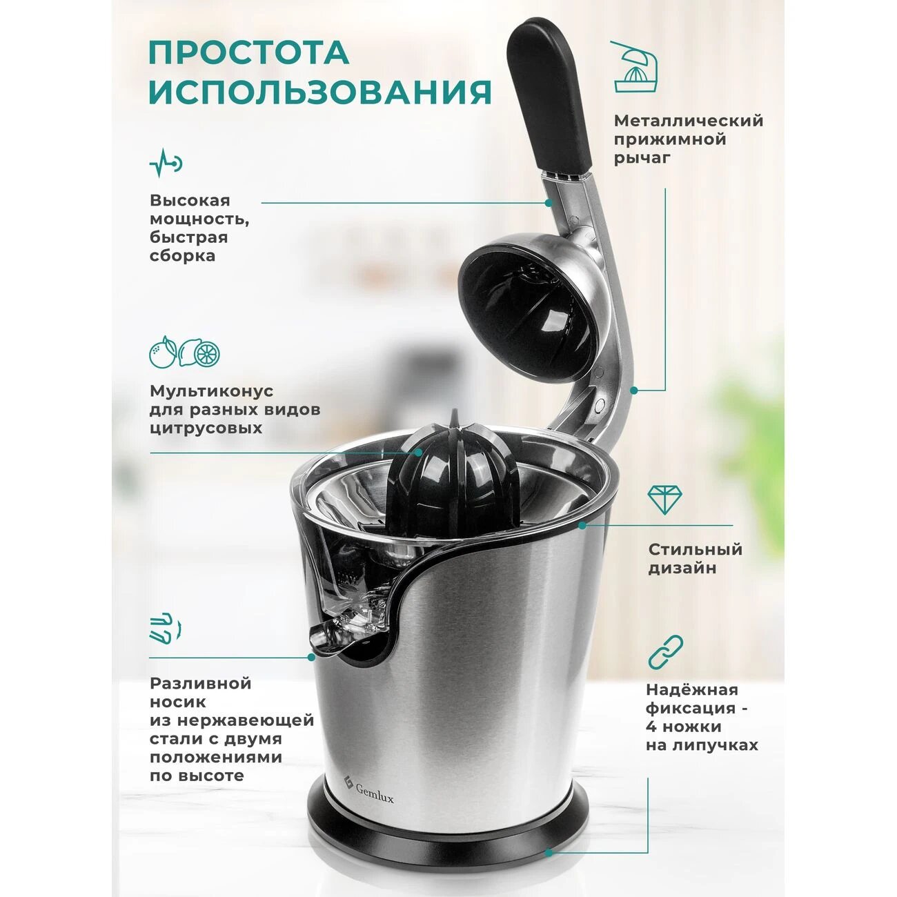 Купить Соковыжималка электрическая для цитрусовых Gemlux GL-CJ160, цитрусовая соковыжималка, цитрус-пресс, техника для приготовления напитков на домашней кухне