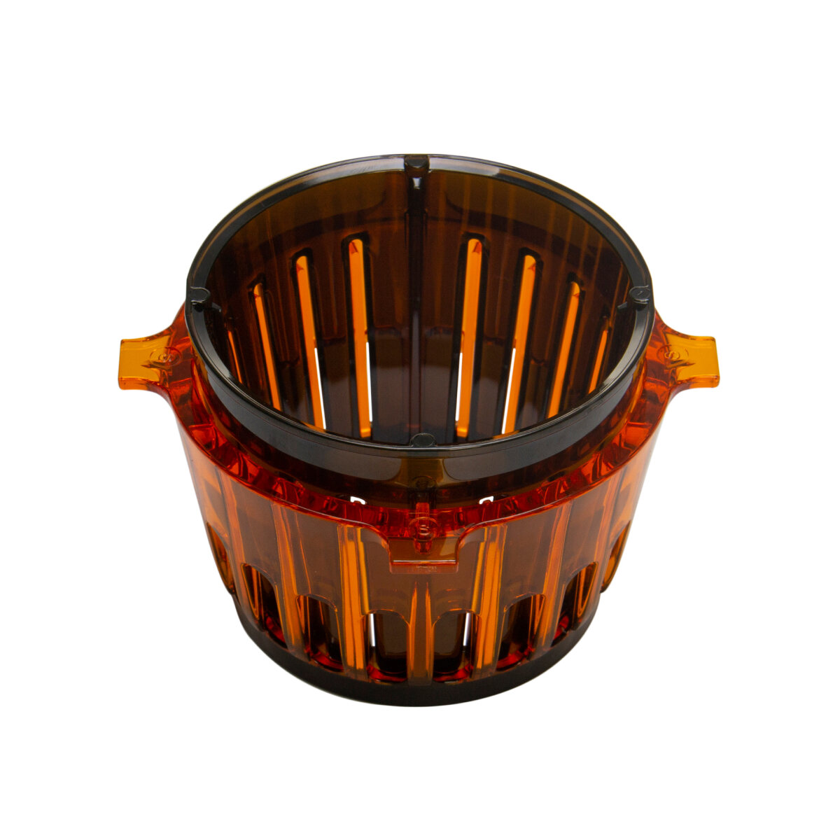 На большом стакане для жмыха нет мерных делений. Кто-то в комментариях писал про это, а я тогда сам удивлялся - зачем? Оказалось, что на семью удобнее подставлять для сока не маленький стакан, а большой. А жмых у меня отваливается в большую миску с очистками от моркови, апельсинов и проч. |