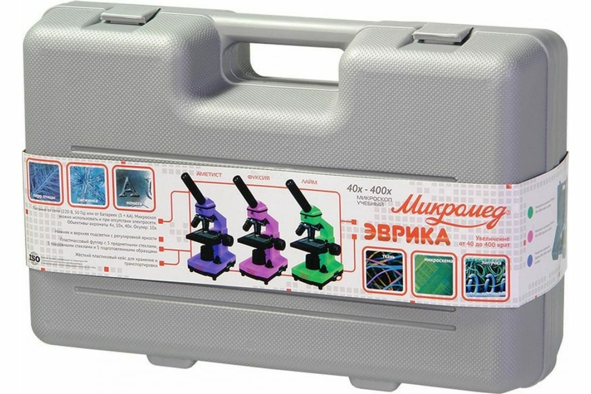 Микроскоп Микромед «Эврика» 40х–400х, аметист, в кейсе