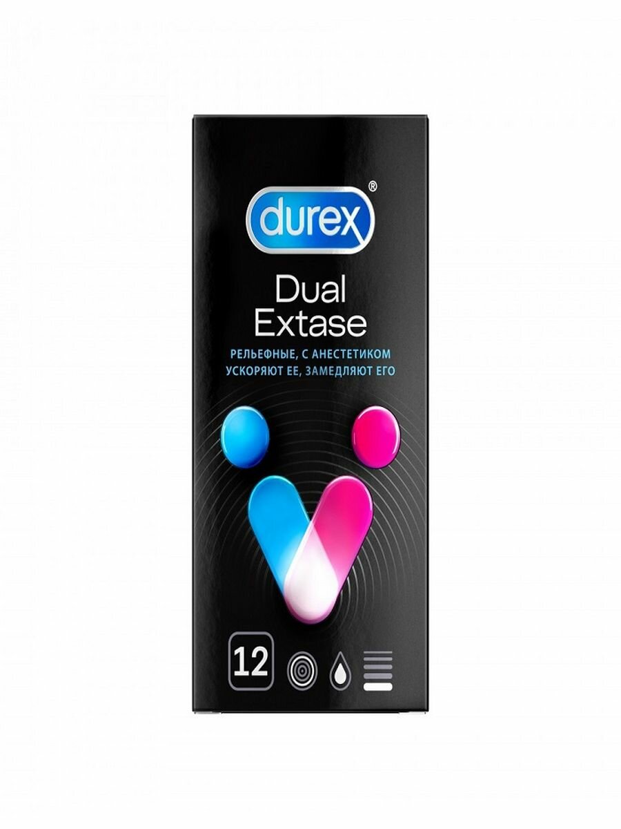 Купить Презервативы Durex Dual Extase рельефные, с анестетиком, 12 шт