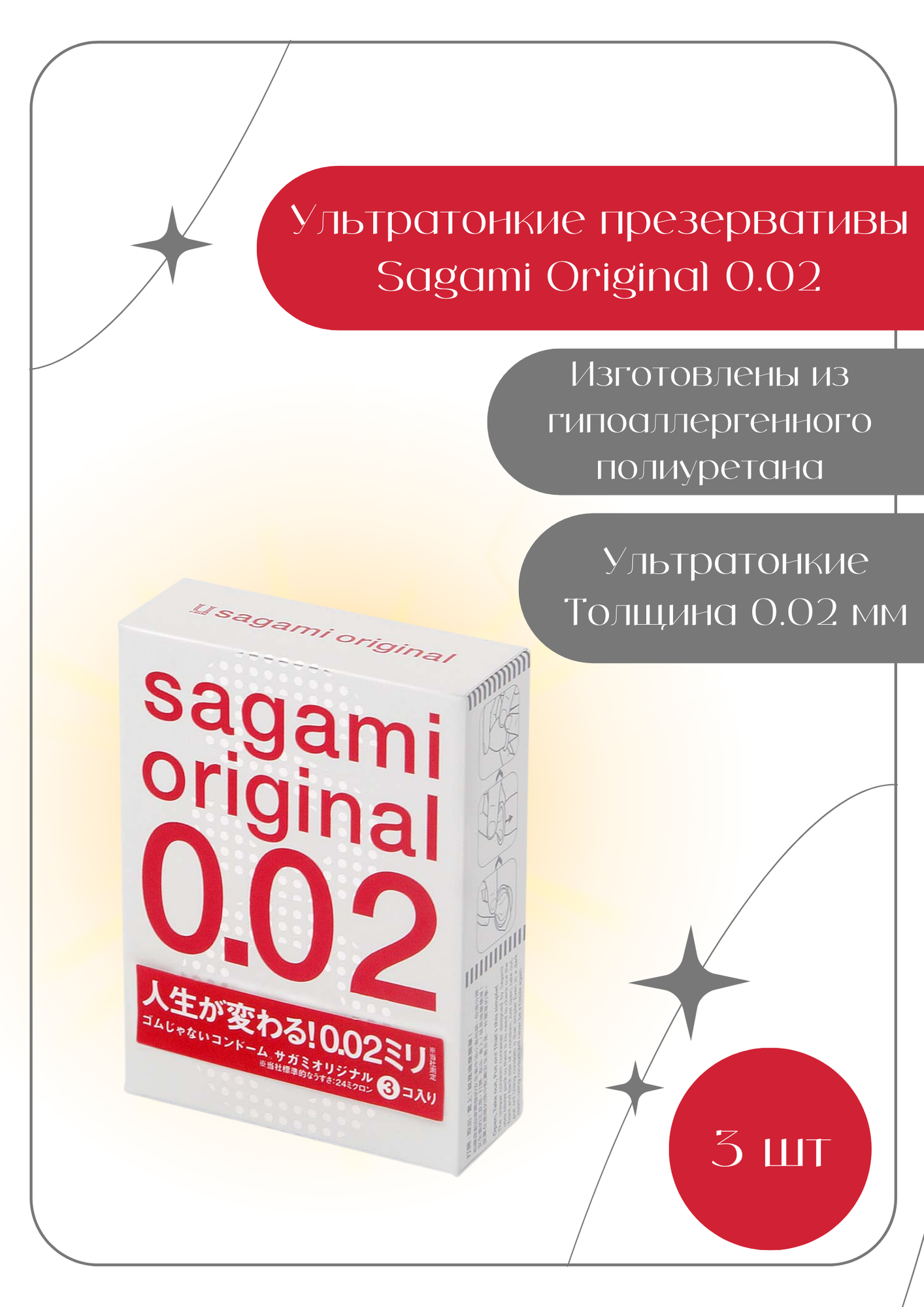 Купить Sagami Original 0.02 - 3 шт. Полиуретановые презервативы 0.02 мм