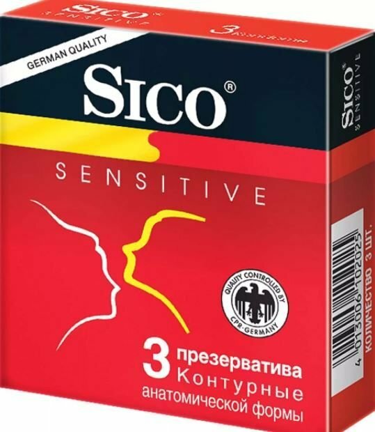 SICO Презервативы Sensitive, контурные, анатомической формы, 3 шт