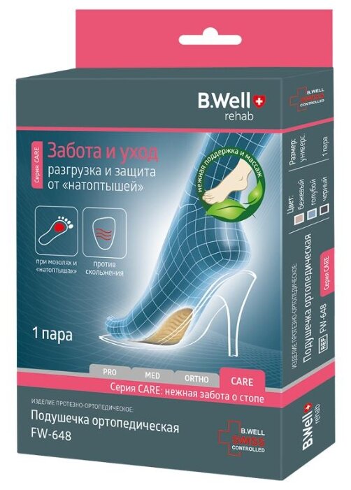 Ниже Вы можете прочитать отзывы на Подушечка ортопедическая B.Well, от натоптышей, гелевая, FW-648 (Черный, пара), ознакомится с подробными характеристиками, посмотреть интересные обзоры и фотографии на Подушечка ортопедическая B.Well, от натоптышей, гелевая, FW-648 (Черный, пара).