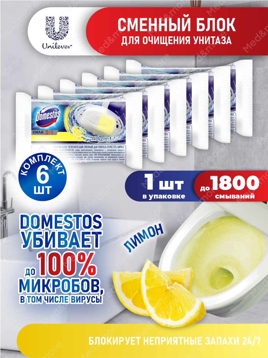 Купить Domestos Сменный блок гигиенический для унитаза Лимон 40 гр. х 6 шт.