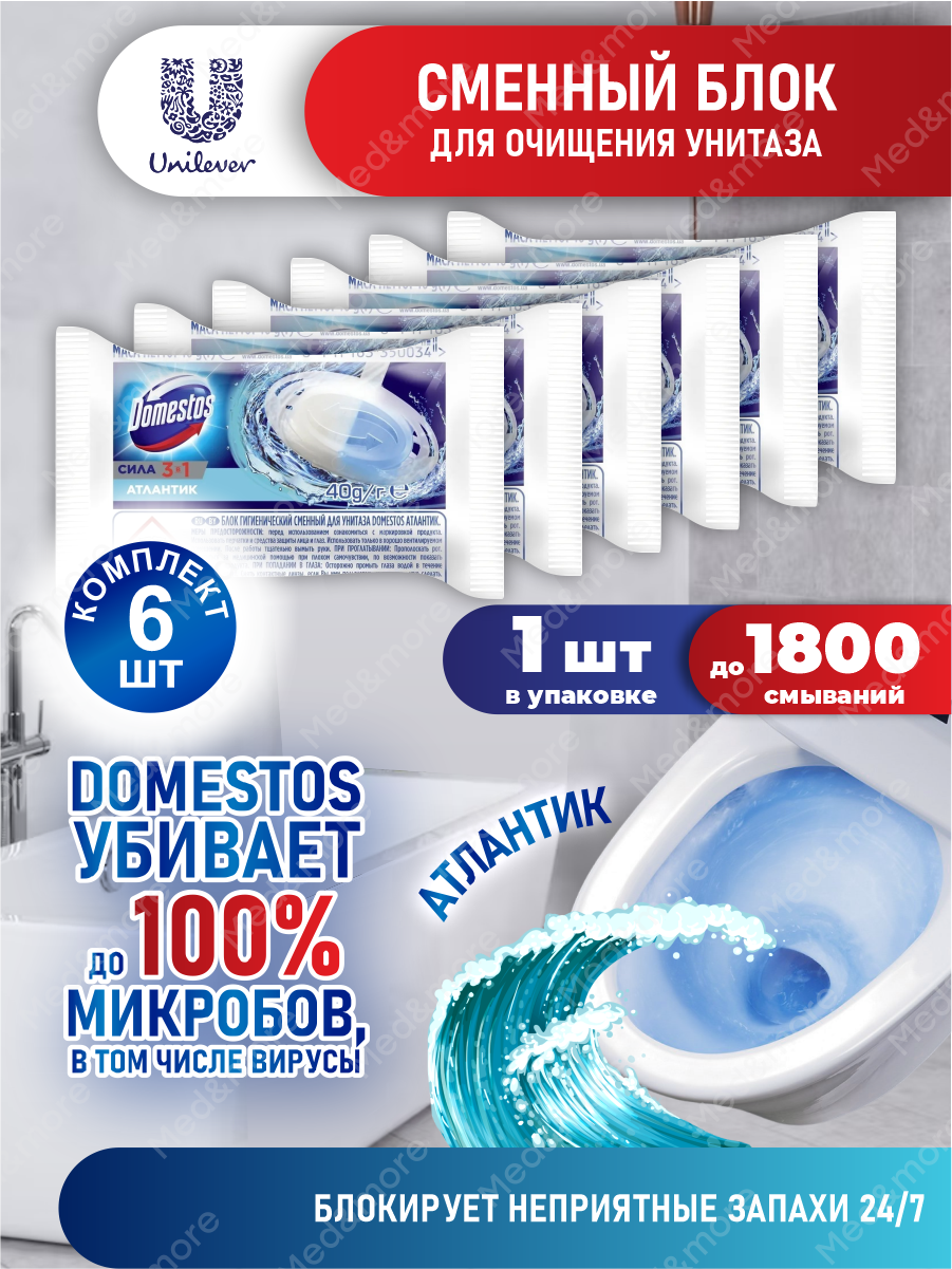 Купить Domestos Сменный блок гигиенический для унитаза Атлантик 40 гр. х 6 шт.