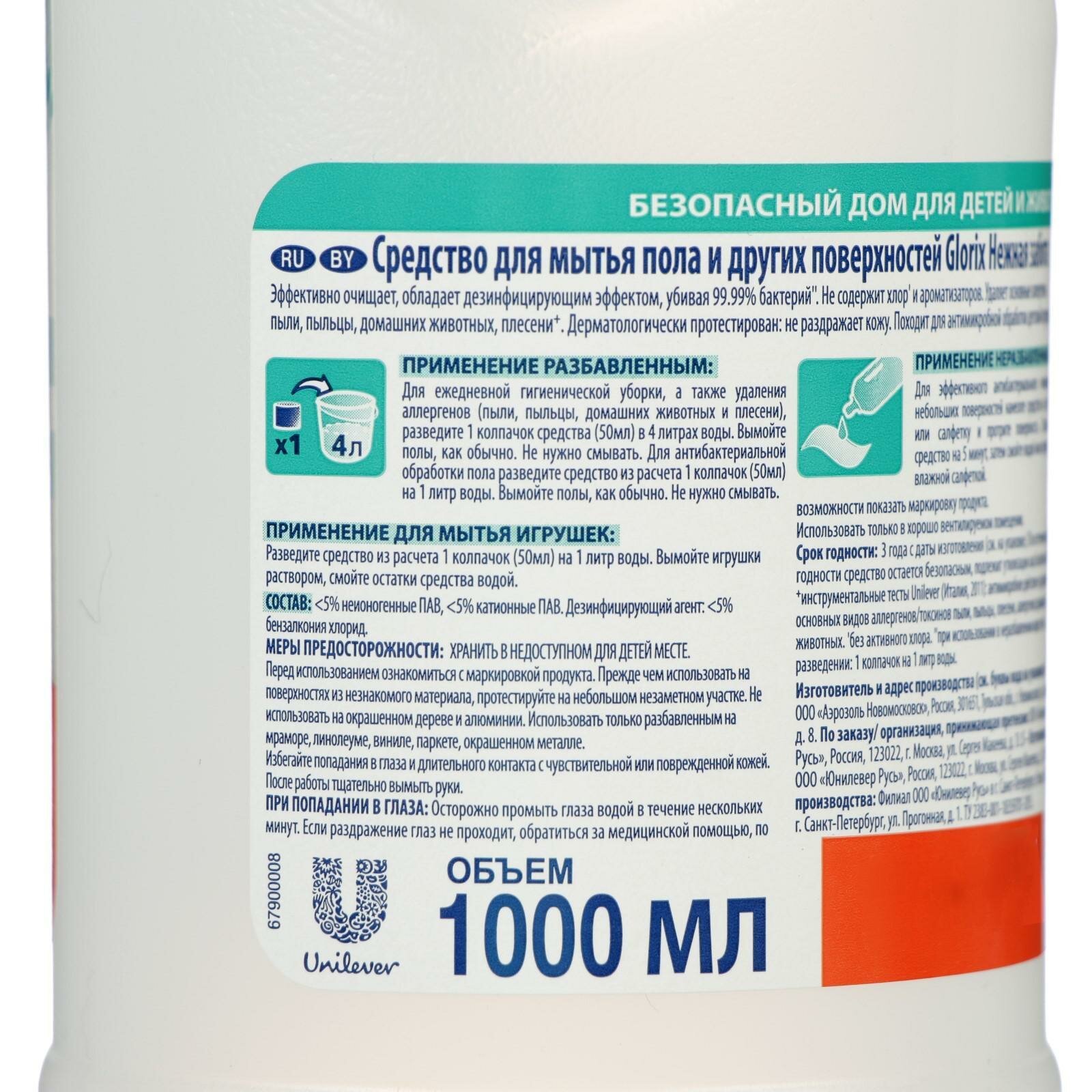 Glorix Средство чистящее для пола Нежная забота, 1 л /