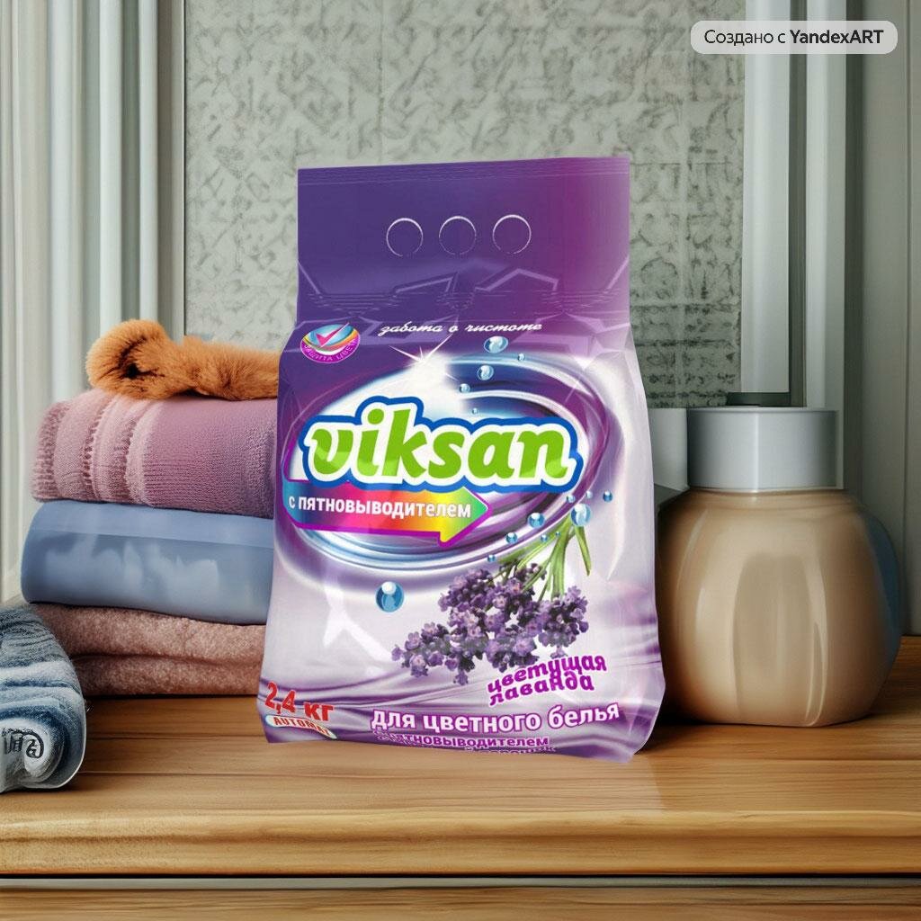 Стиральный порошок с пятновыводителем для цветного белья с пятновыводителем автомат VIKSAN Цветущая лаванда 2,4кг для ручной и машинной стирки