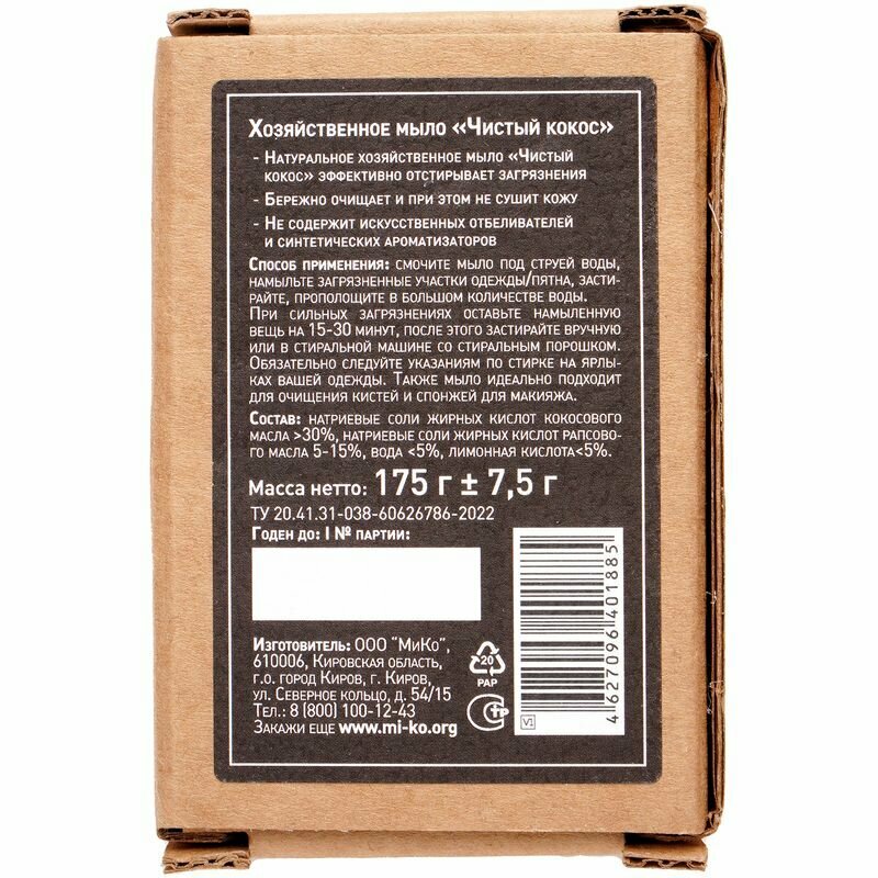Мыло MI&KO Хозяйственное "Чистый кокос", 175 г