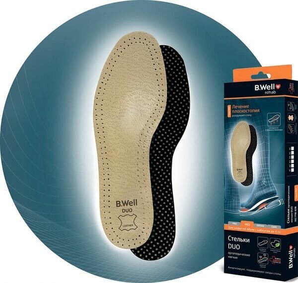 Стельки ортопедические B.Well rehab DUO FW-618 мягкие, кожа, размер 38
