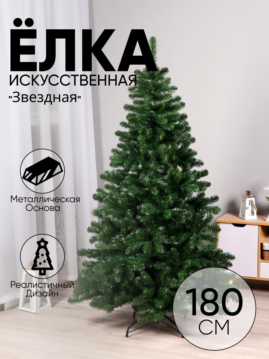 Елка новогодняя 180 см, Звездная, сосна, зеленая, хвоя ПВХ пленка, 010180, ЕлкиТорг