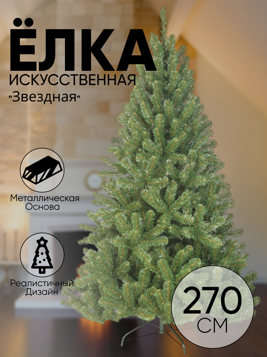 Елка новогодняя 270 см, Звездная, сосна, зеленая, хвоя ПВХ пленка, 10270, ЕлкиТорг