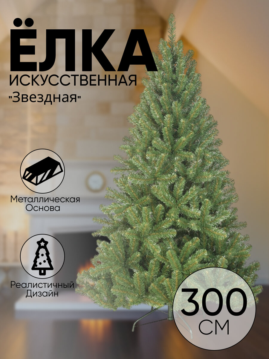 Елка новогодняя 300 см, Звездная, сосна, зеленая, хвоя ПВХ пленка, 10300, ЕлкиТорг