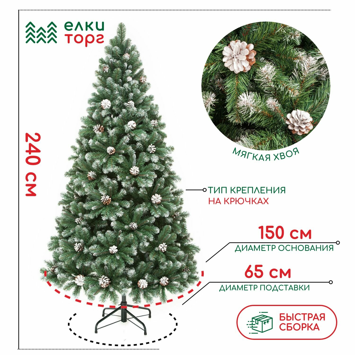 Искусственная елка Снежная королева заснеженная с шишками 240 см., ЕлкиТорг