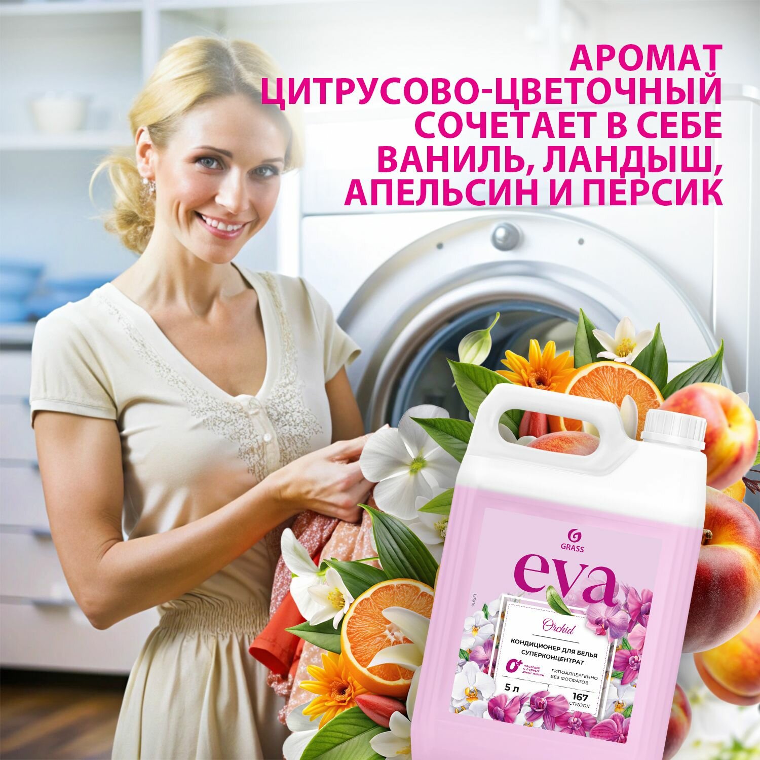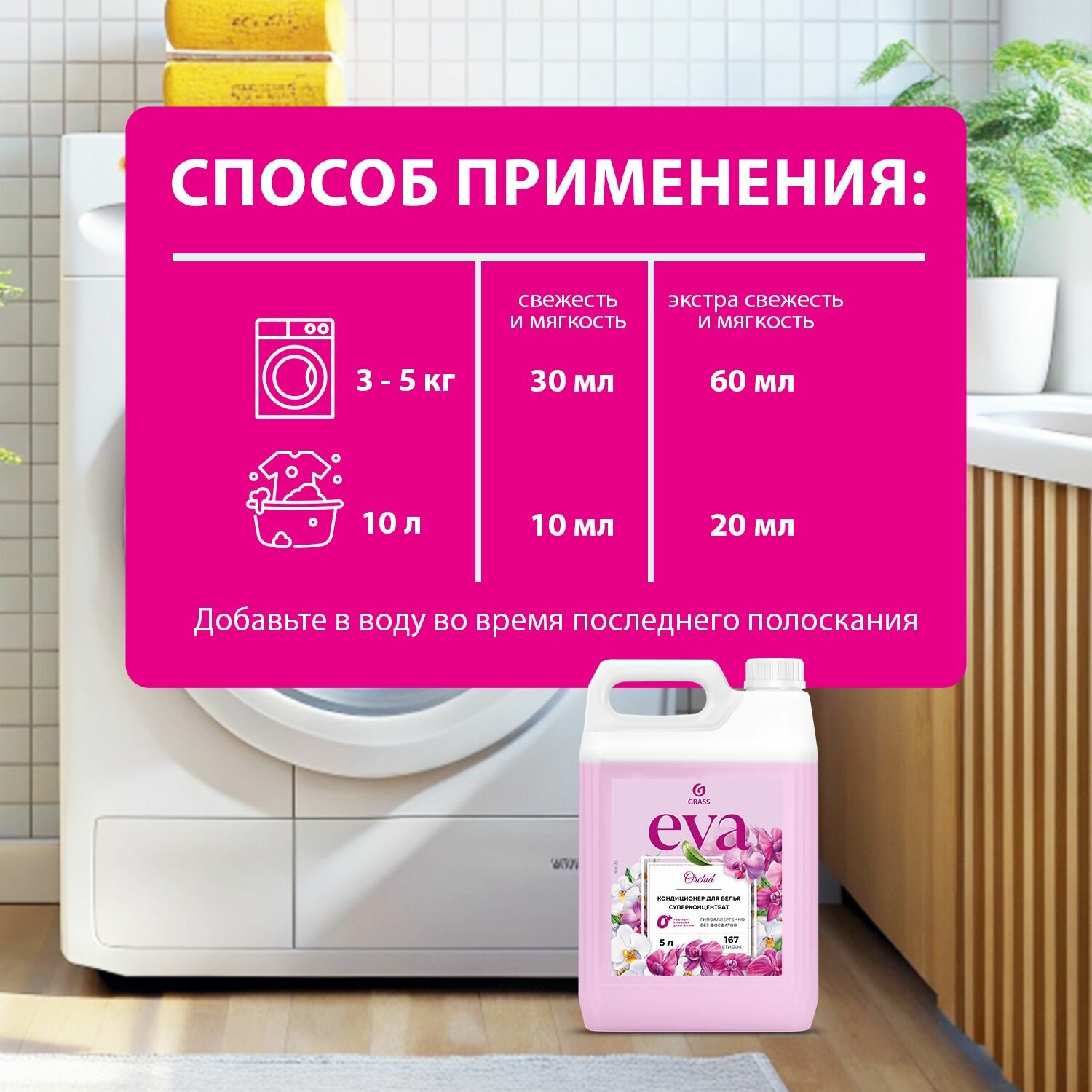 Купить GRASS/ Кондиционер для белья Grass EVA Orchid, 5 л., 167 стирок // Ополаскиватель для одежды, концентрат, гипоаллергенный, 0+, 5000 мл.