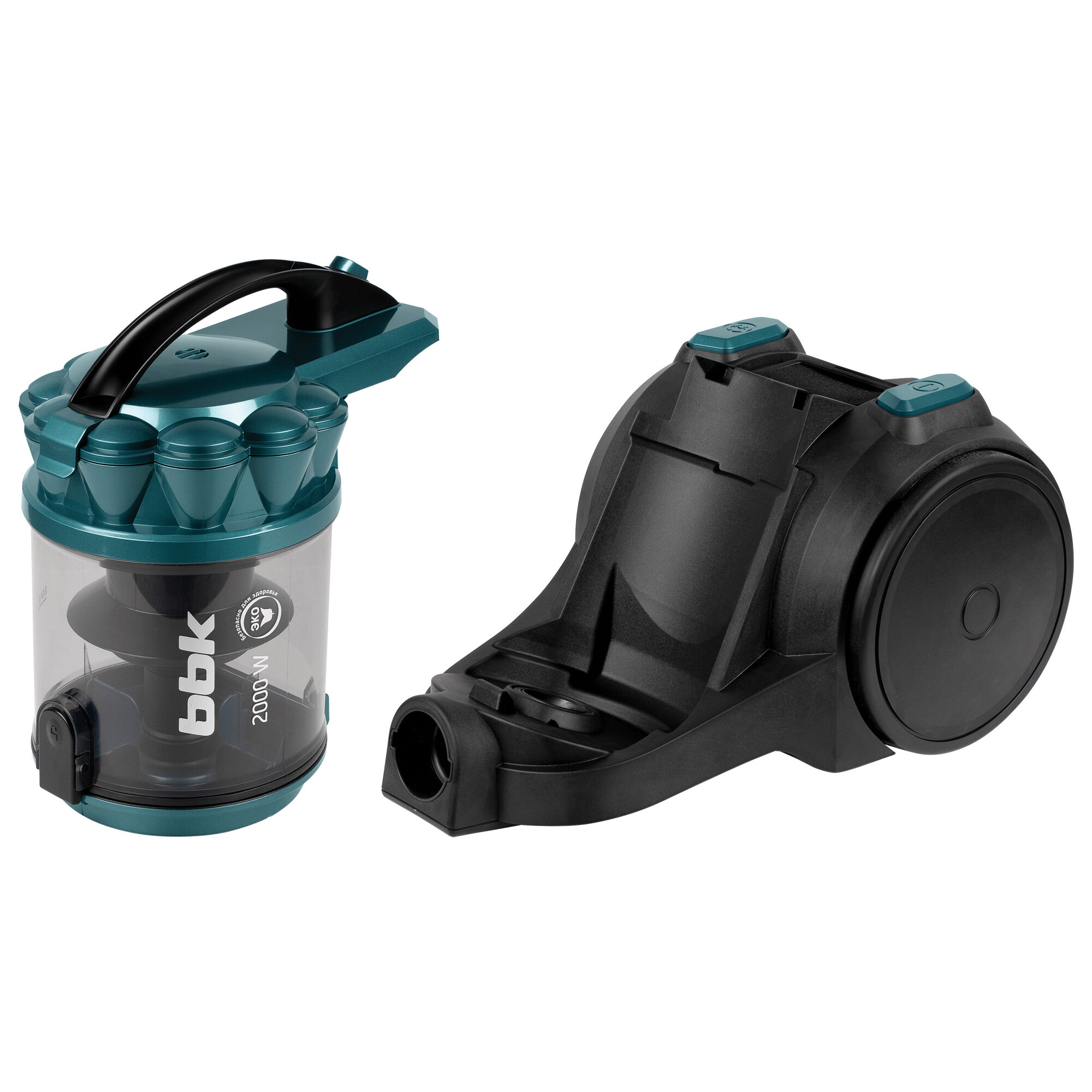 Купить Пылесос циклонный BBK BV1505 черный/изумрудный, мощность 2000Вт, нера фильтр, мощность всасывания 350 Вт, объем контейнера 2 л, 3 насадки в комплекте