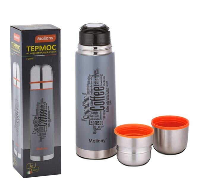 Термос для чая и кофе Mallony Forte, нержавеющая сталь, 2 чашки, 1 литр