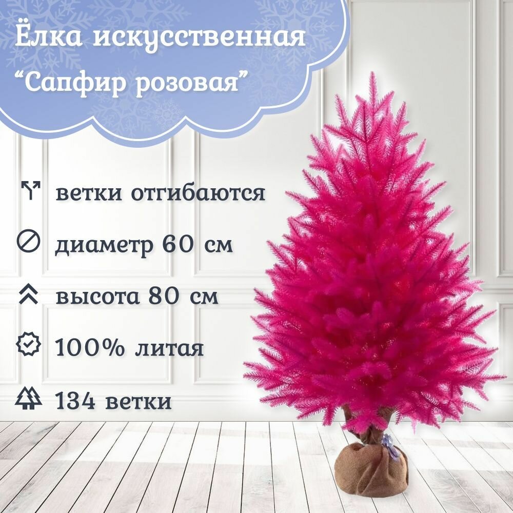 Елка искусственная новогодняя Царь Елка Сапфир розовая, высота 80 см, 100% литая, настольная, в мешочке