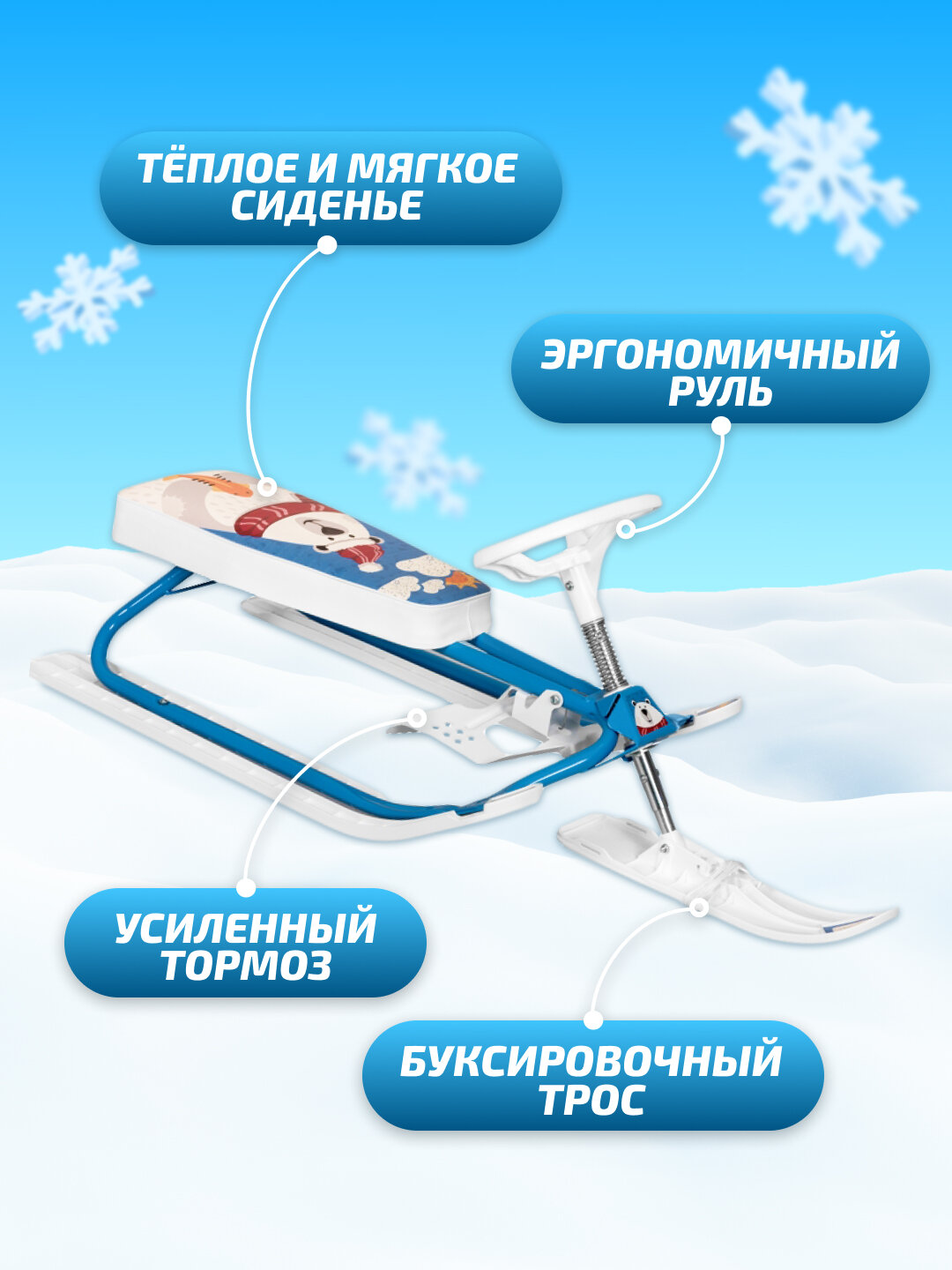 Снегокат "Белый мишка" (голубой/белый) СНК.11