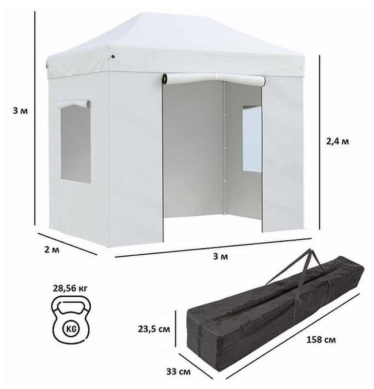Тент-шатер быстросборный Helex 4320 3х2х3м полиэстер белый