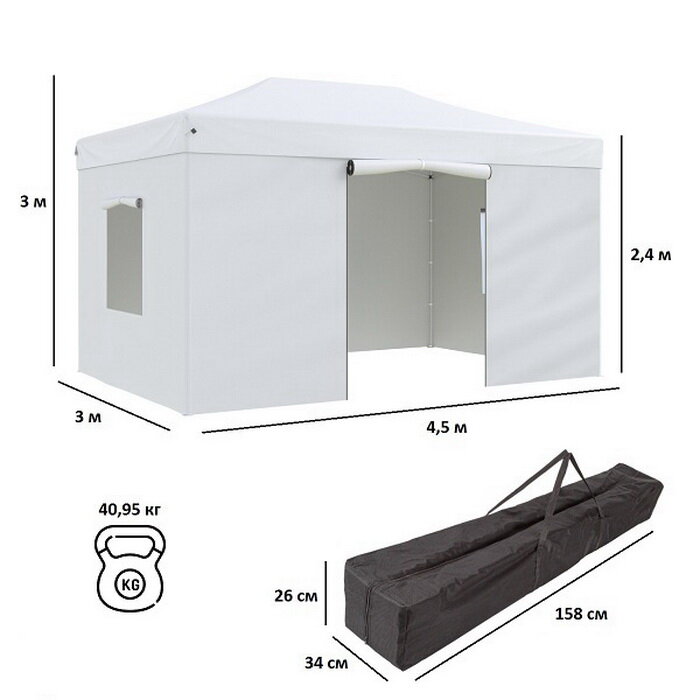 Helex Тент-шатер быстросборный Helex 4335 3x4,5х3м полиэстер белый