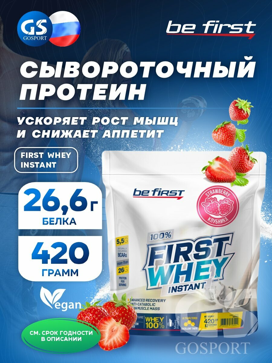 Протеин сывороточный Be First Whey instant 420 г (Клубничное мороженое)