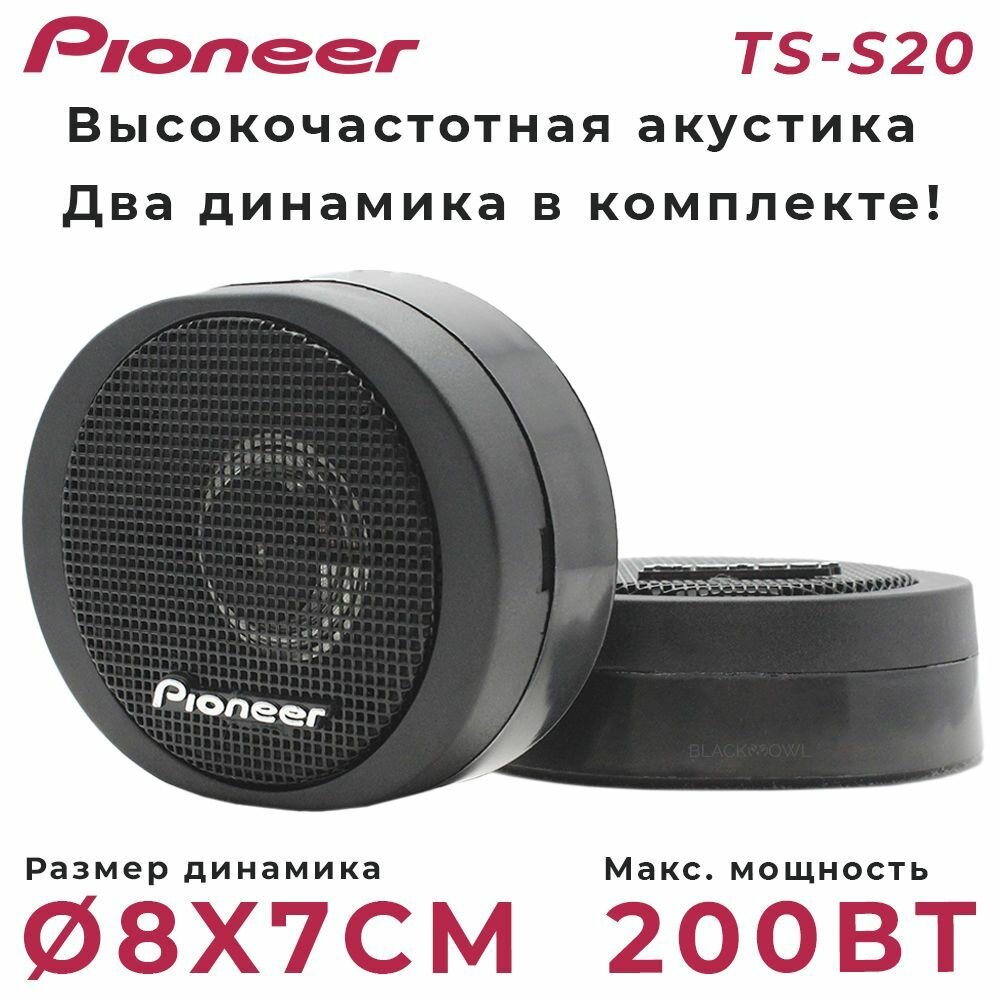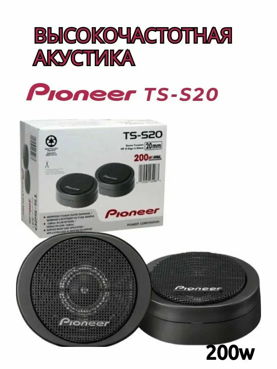 Твитеры автомобильные со встроенным фильтром "Pioneer TS-S20" / Комплект из 2 штук / Высокочастотные динамики, пищалки, 200 Вт. интересное: