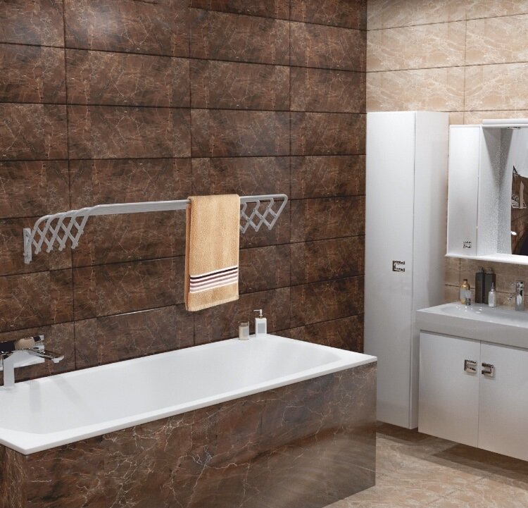 | Плюсы: | Отлично вписалась, не хлипкая, адекватный ценник, экономит место. В какой то момент с появлением мебели надоело уже сушить белье в комнате на раскладной сушилке, возник вопрос куда перенести это действо. Лоджия уже была переделана под кабинет, Оставалась ванная достаточно внушительных размеров, но места на полу было недостаточно, Возникла идея поискать что то настенное и складное, собственно оно и нашлось... |