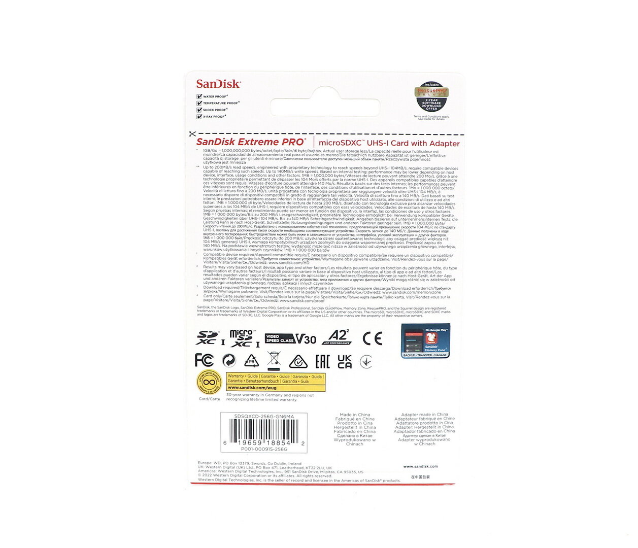 Карта памяти Sandisk Extreme Pro microSDXC 256GB + SD Adapter + Rescue Pro Deluxe SDSQXCD-256G-GN6MA