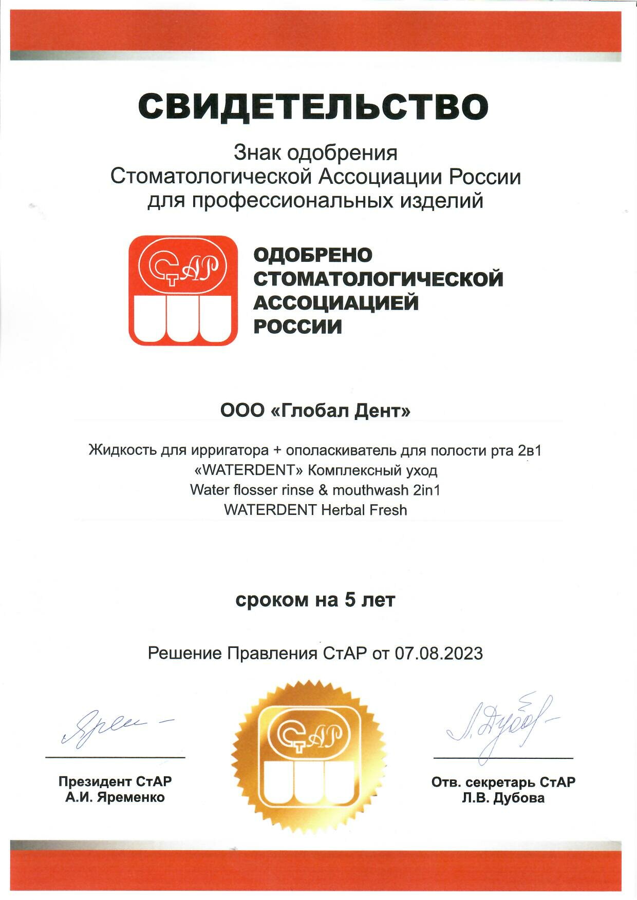 Жидкость для ирригатора 2 в 1 WATERDENT укрепление десен 500 мл