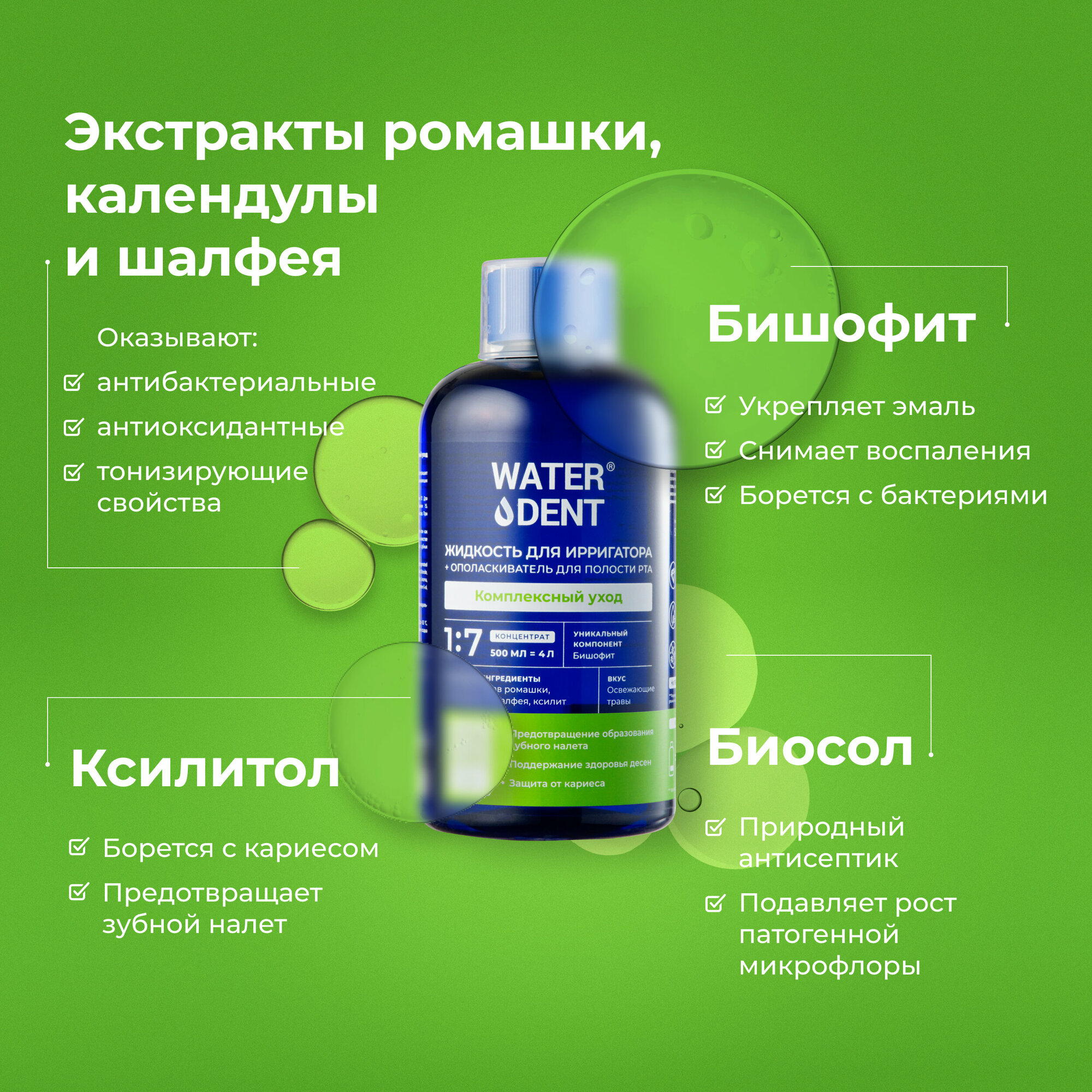 Жидкость для ирригатора Waterdent 2в1 "Комплексный уход", 500 мл
