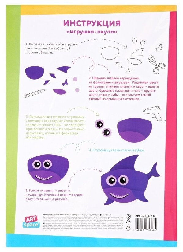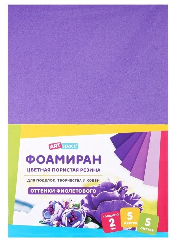 Цветная пористая резина фоамиран ArtSpace, А4, 5л., 5цв., 2мм, оттенки фиолетового интересное: