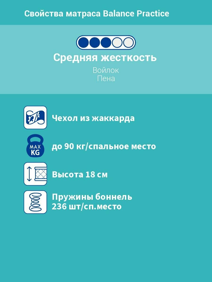 Матрас Balance Practice 160х200, пружинный,средней жёсткости, 18см