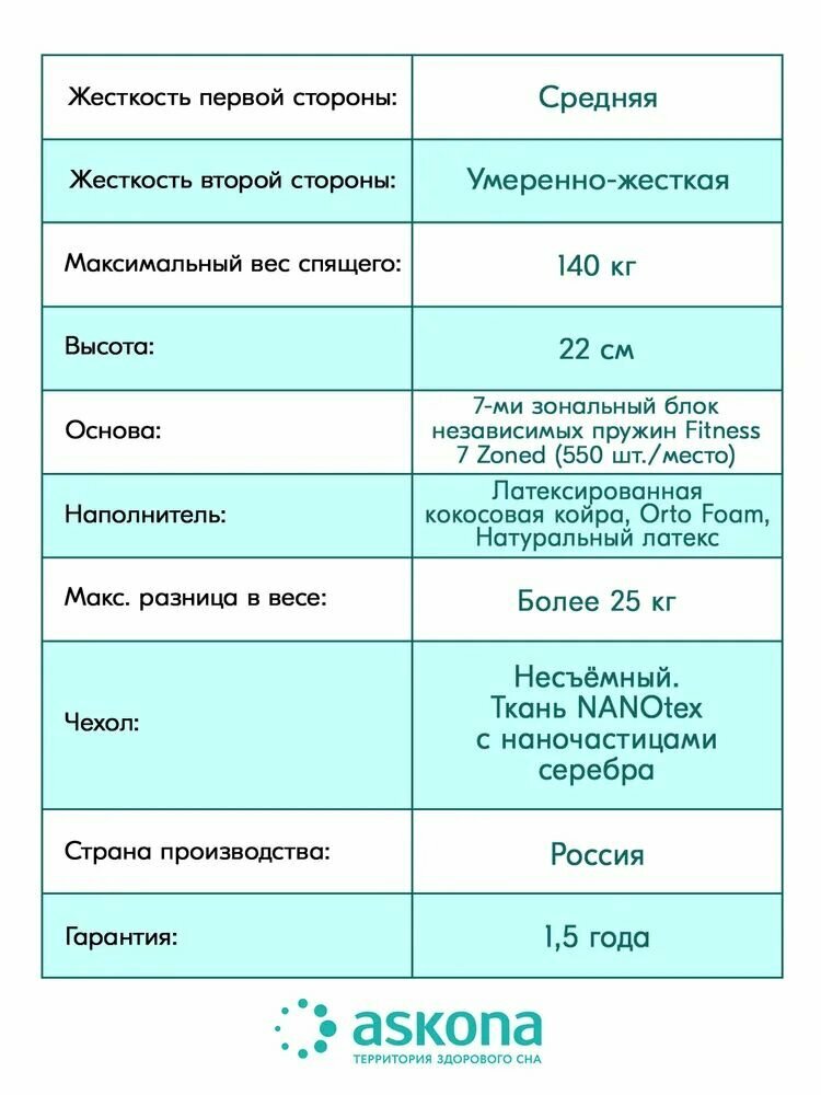 Ортопедический матрас Askona Fitness Formula 140х200, стандартный