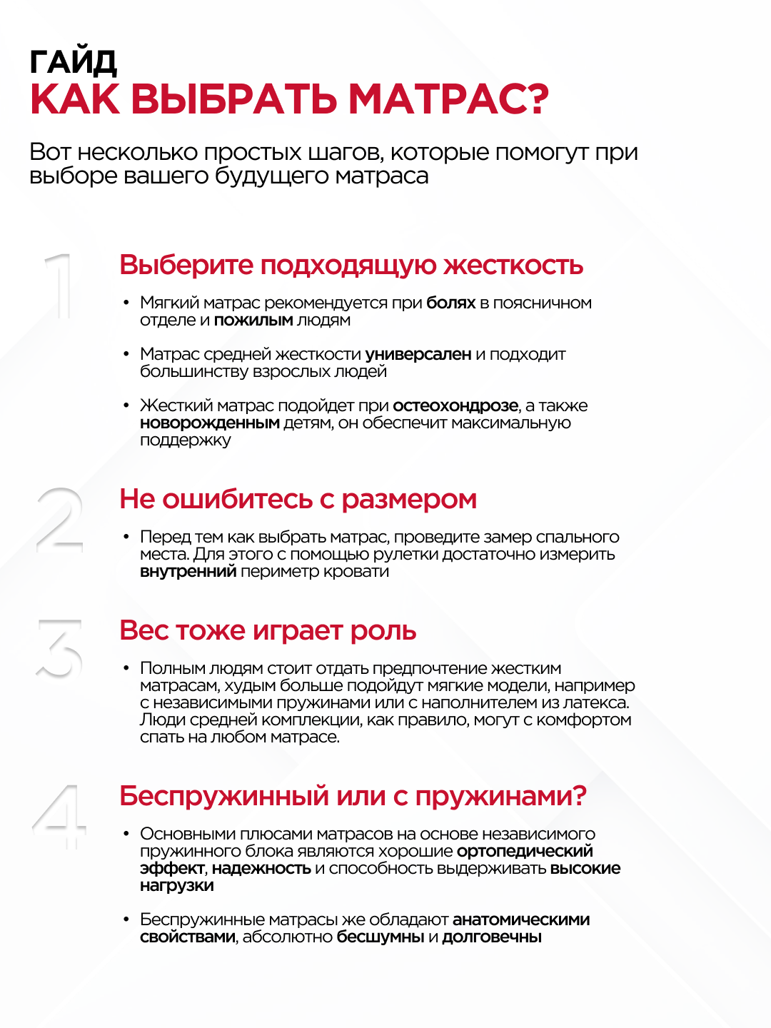 | Плюсы: | Матрас довольно жёсткий, но в то же время достаточно мягкий, комфортный. |