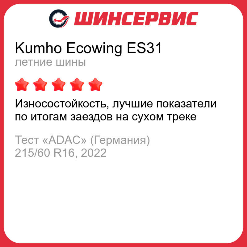 Летняя шина Kumho Ecowing ES31 (215/60 R16 95V)