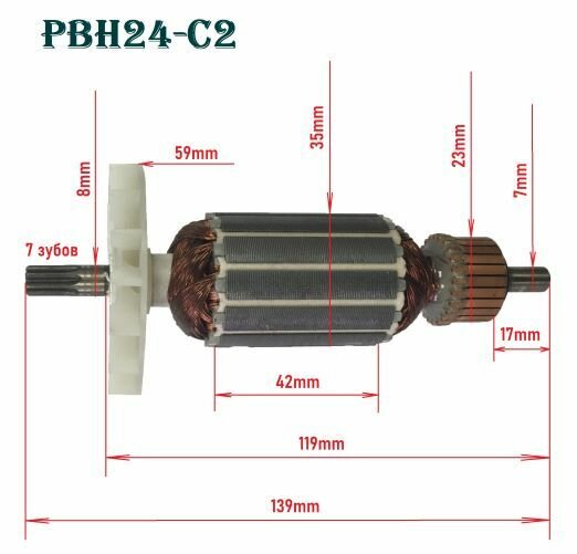 Якорь-ротор PBH24-C2/68 PIT двигателя перфоратора L139мм D35мм 7 зубов прямой шлиц интересное: