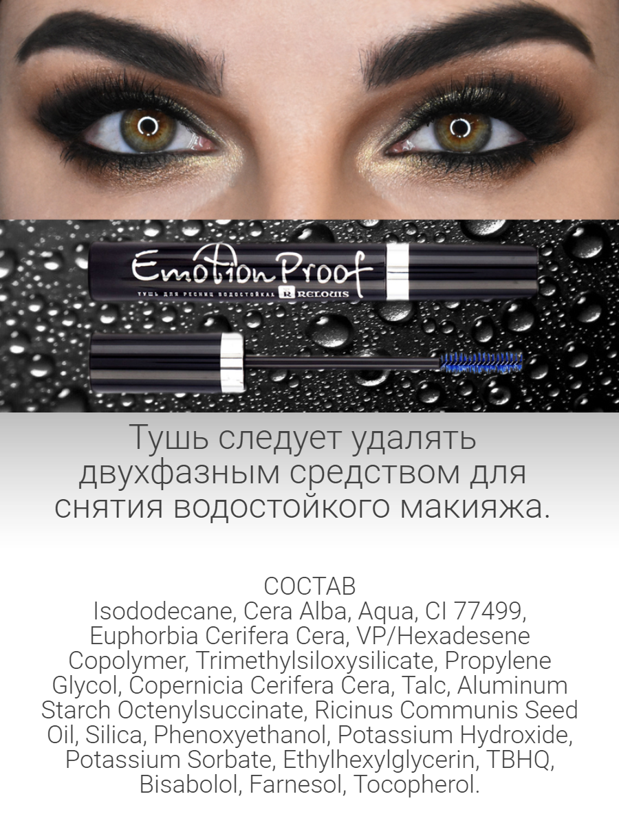 Relouis Тушь для ресниц, Emotion Proof, водостойкая