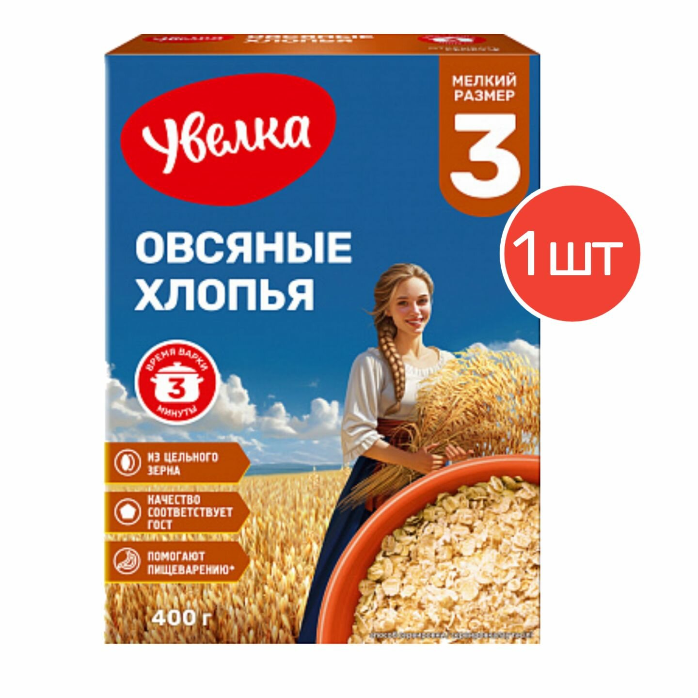 Увелка Хлопья овсяные быстрые, 400 г, 6 шт
