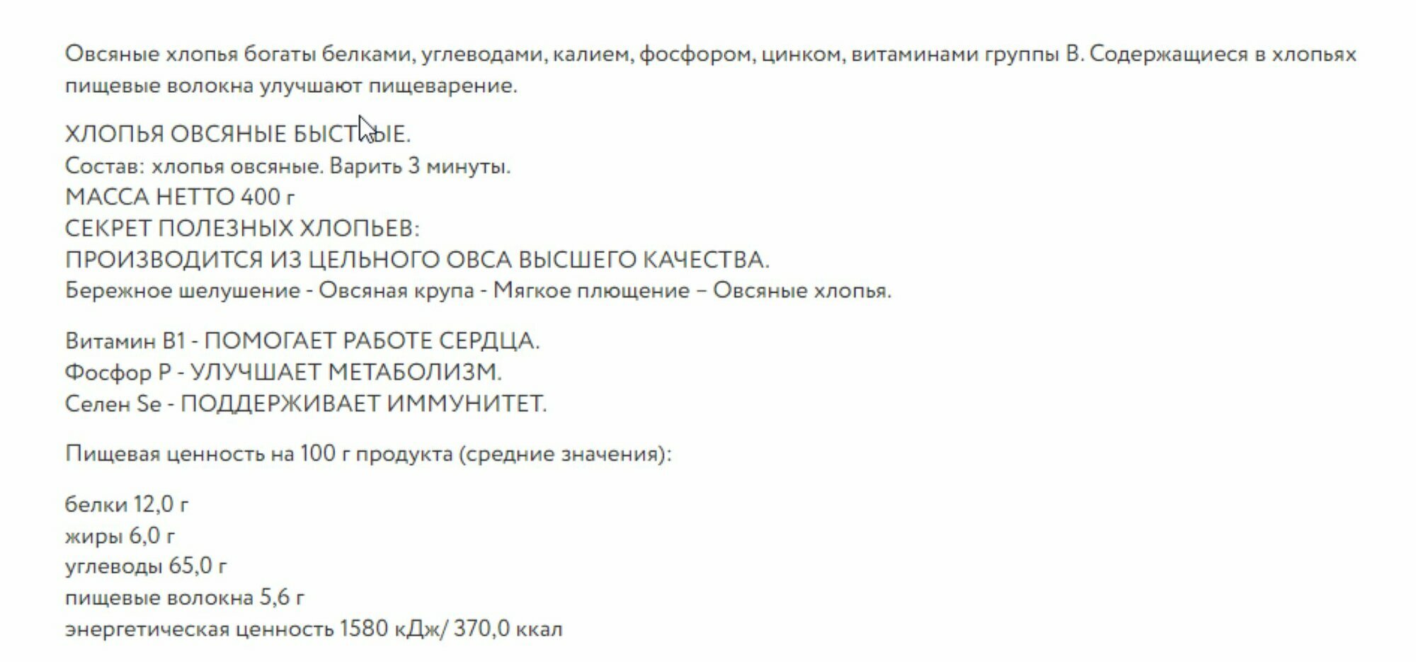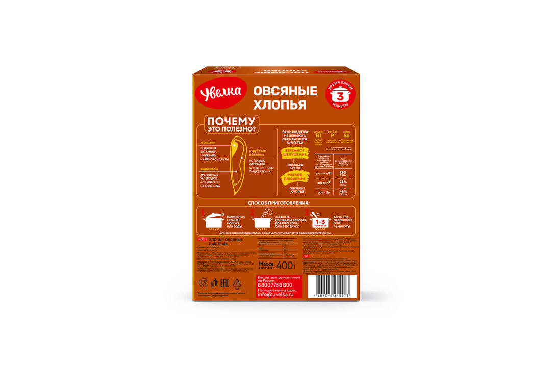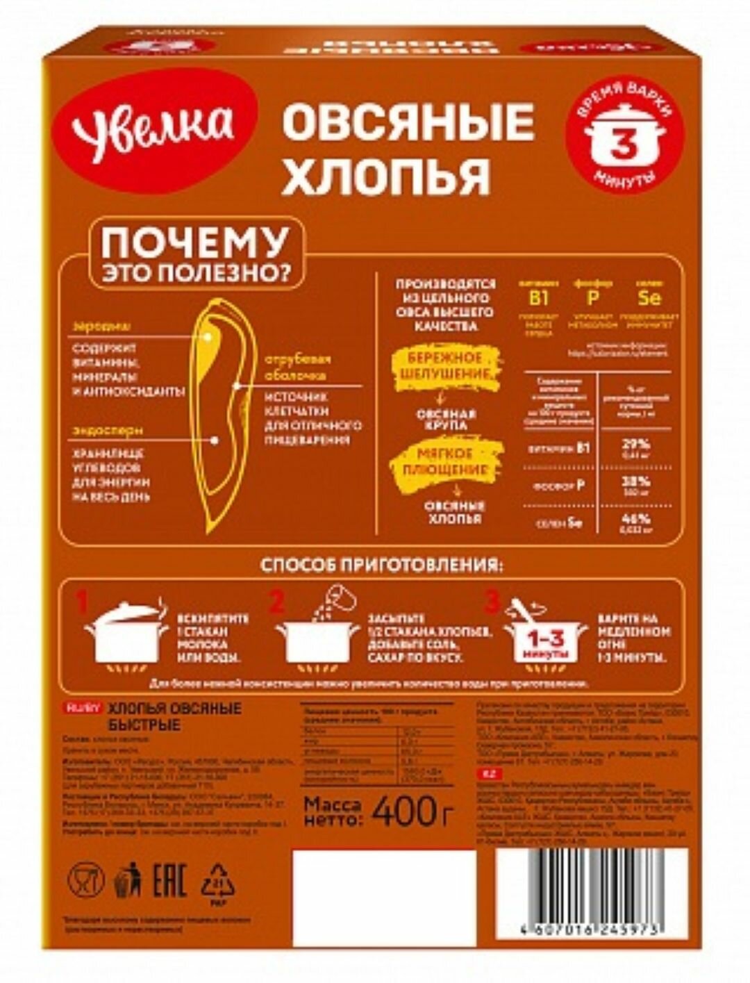 Хлопья Увелка овсяные быстрые (3 мин) 400г интересное: