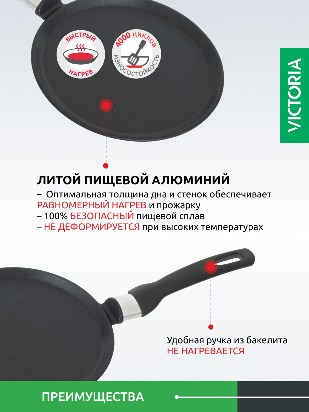 Сковорода блинная с антипригарным покрытием, блинница 22 см, VICTORIA, М0222 интересное: