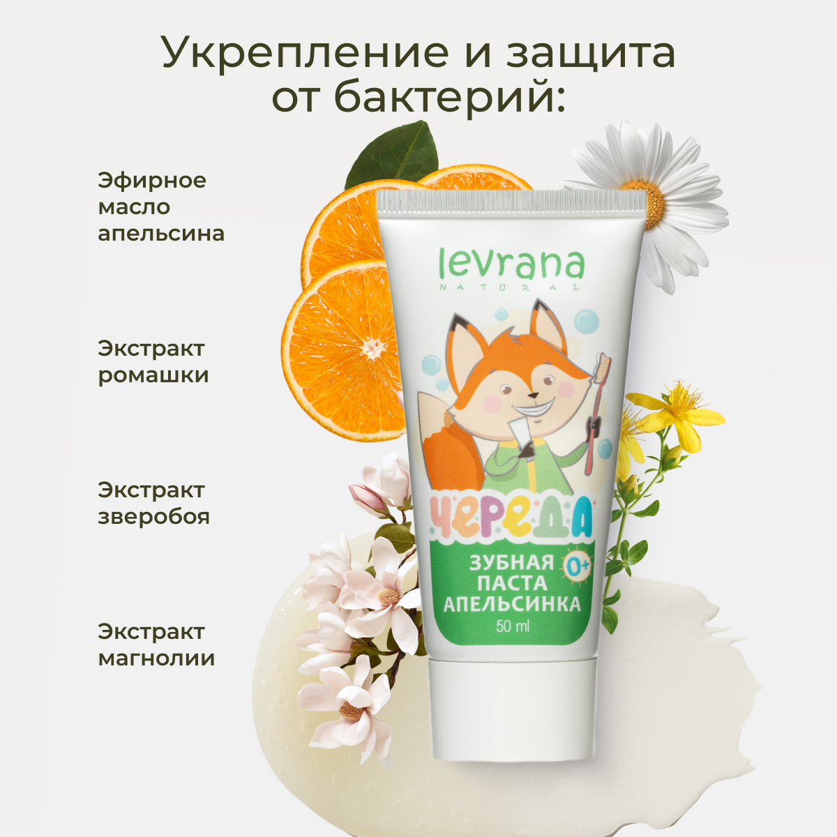 Levrana, Зубная паста Апельсинка со вкусом сладкого апельсина, 50 мл