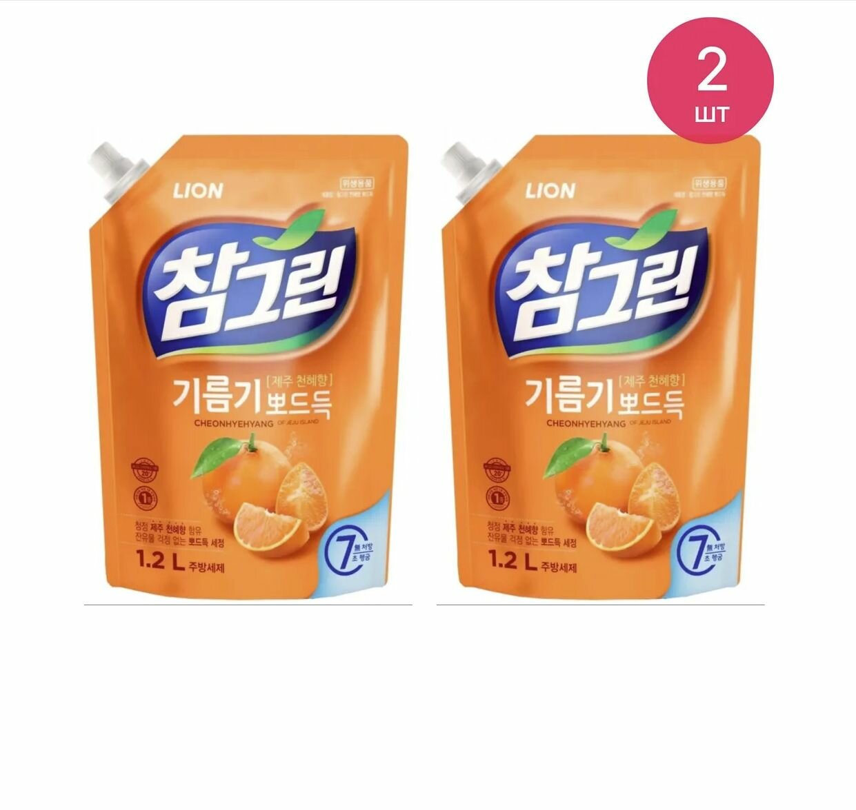 Купить LION Средство для мытья посуды CHAMGREEN с экстрактом японского мандарина, 1200мл (комплект 2шт)