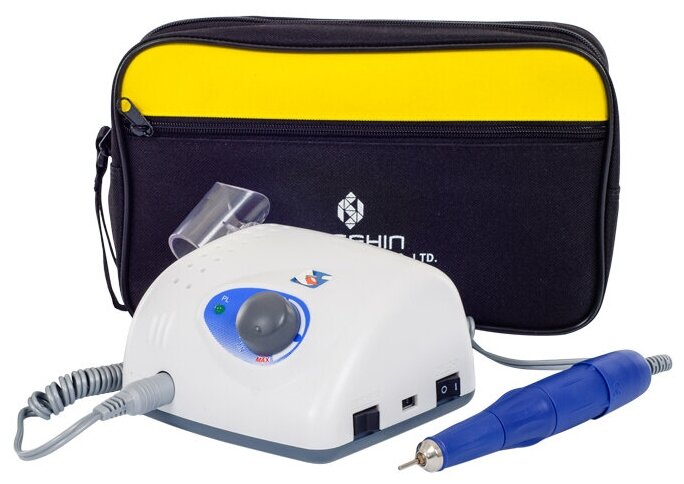 Аппарат для маникюра и педикюра Strong 210/105L, Strong с педалью и сумкой, 35000 оборотов в минуту, белый/синий