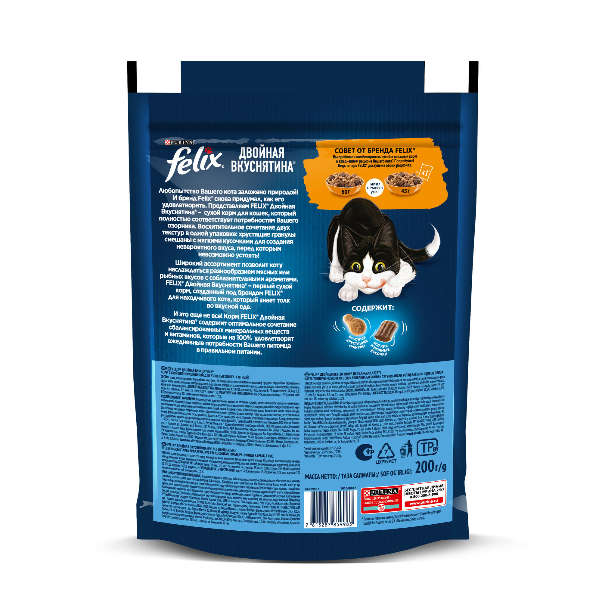 Сухой корм Felix Двойная Вкуснятина для взрослых кошек, с птицей, Пакет, 200г х 1 шт