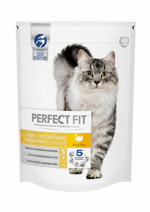 Корм сухой Perfect Fit Sensitive для взрослых кошек с чувствительным пищеварением, с индейкой, 10 кг