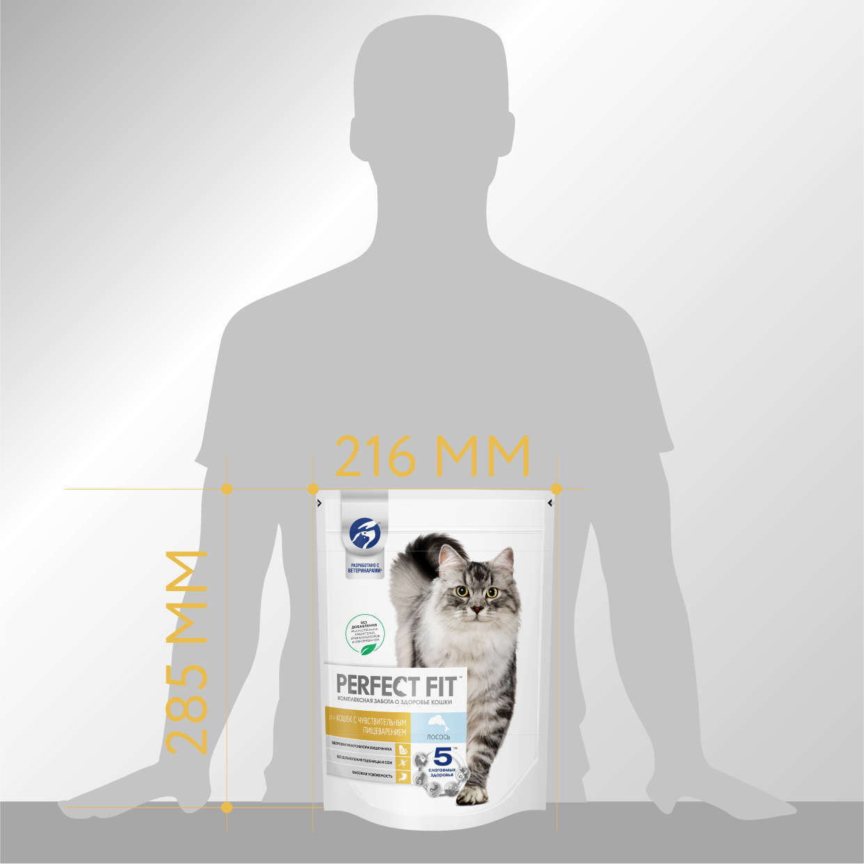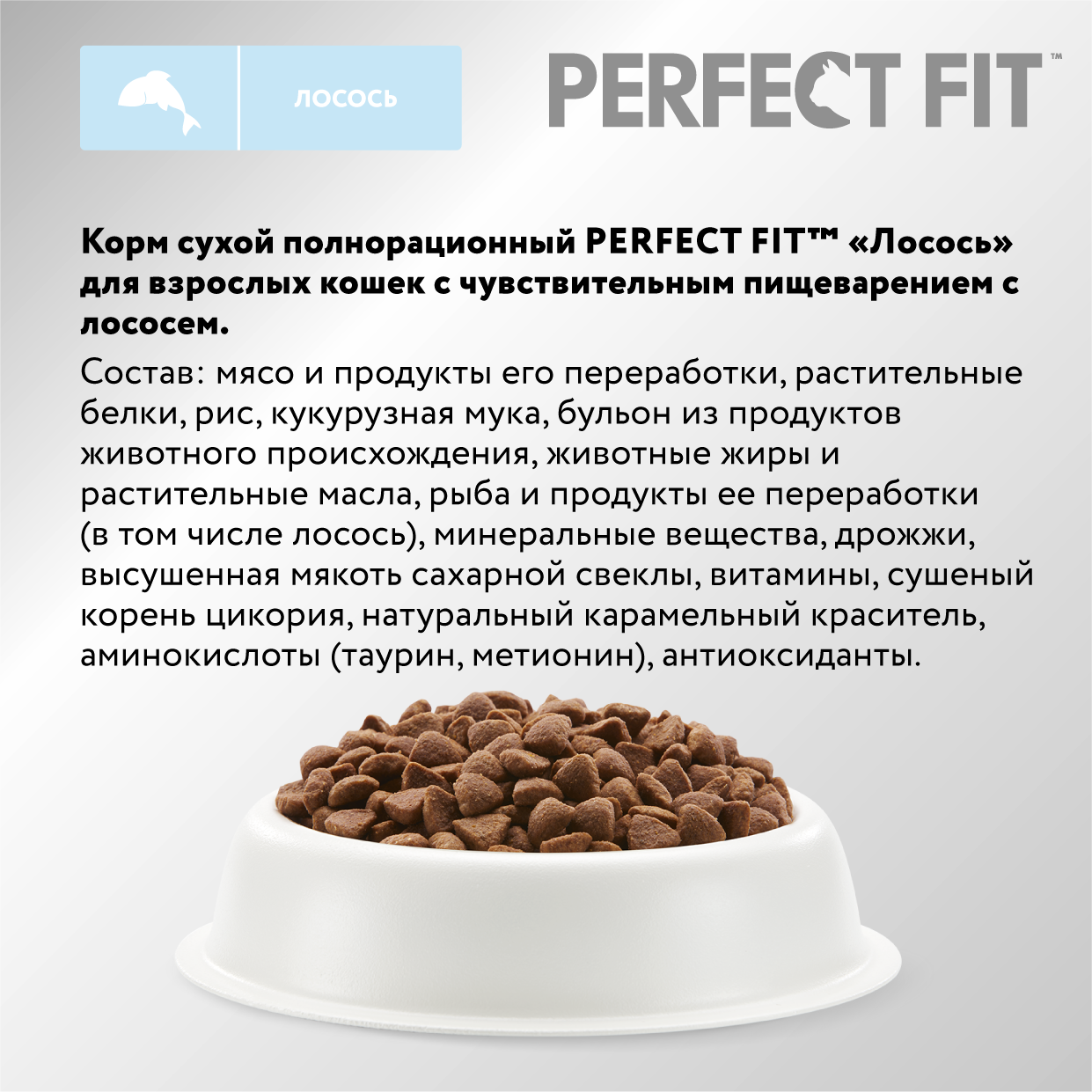 Купить Сухой полнорационный корм PERFECT FIT для взрослых кошек с чувствительным пищеварением, с лососем, 3 шт по 650 г