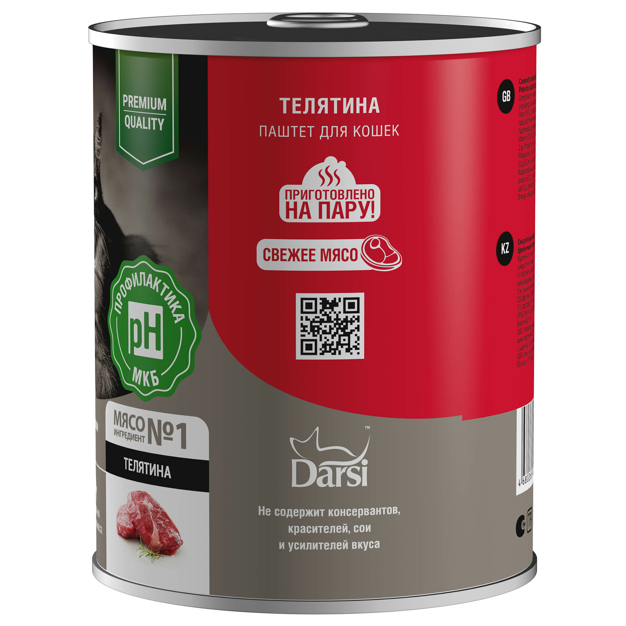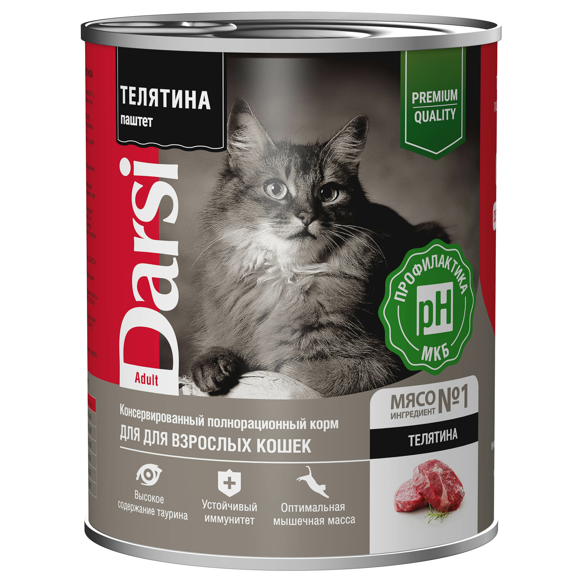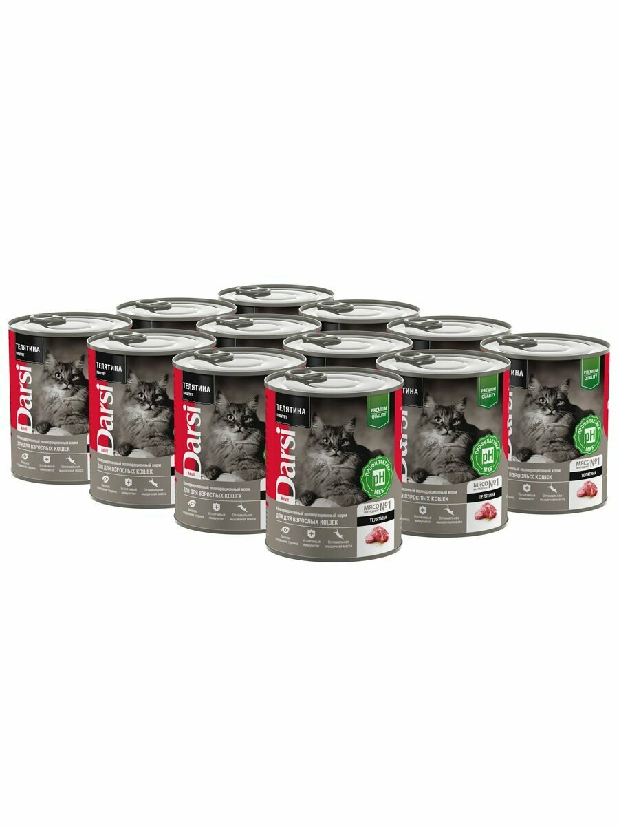 Корм влажный Darsi (паштет) для взрослых кошек Телятина, 12шт.*340 г