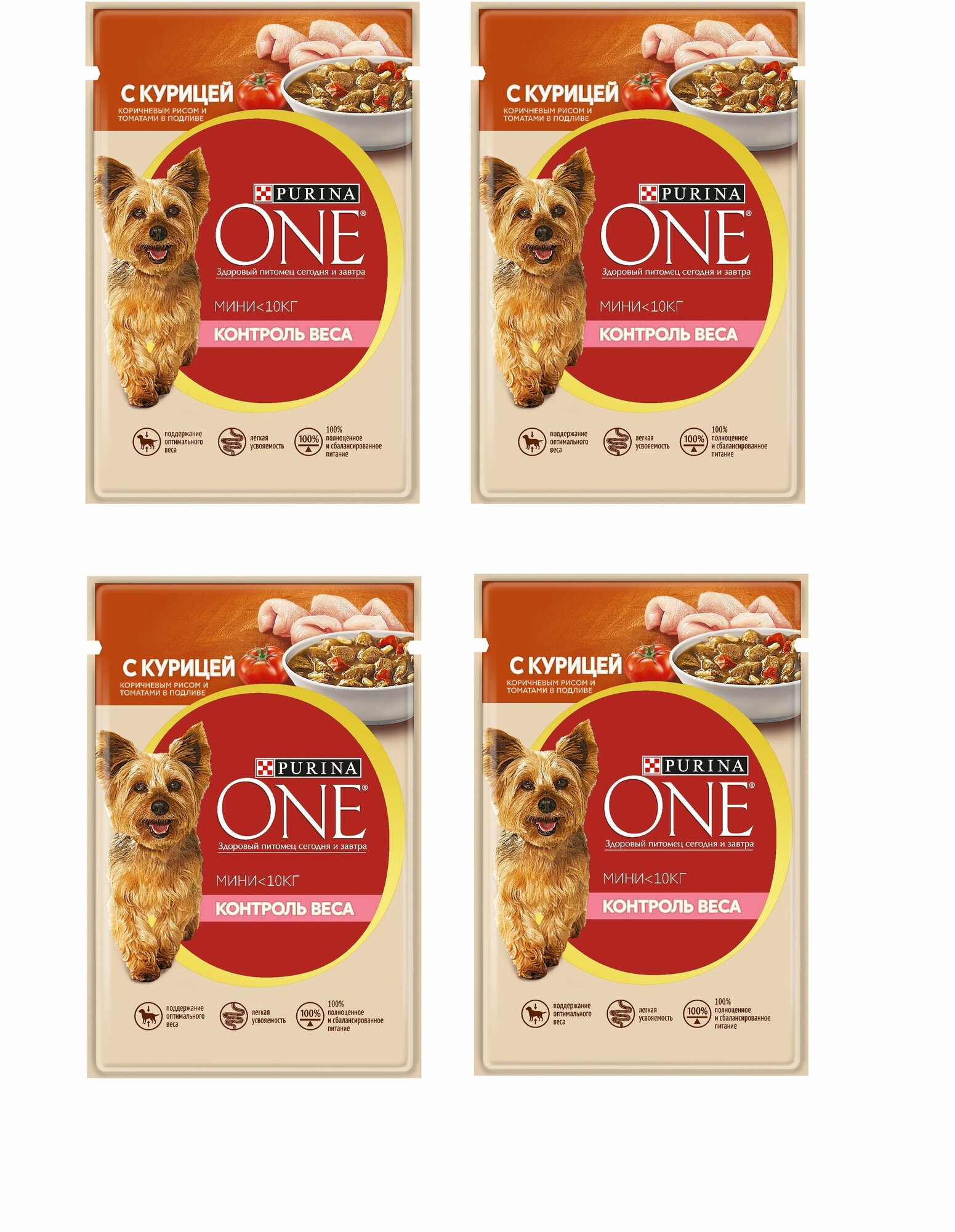 Купить Влажный корм Purina ONE мини Контроль веса для собак мелких пород, с курицей, коричневым рисом и томатами в подливе, 85 гр, 4 шт