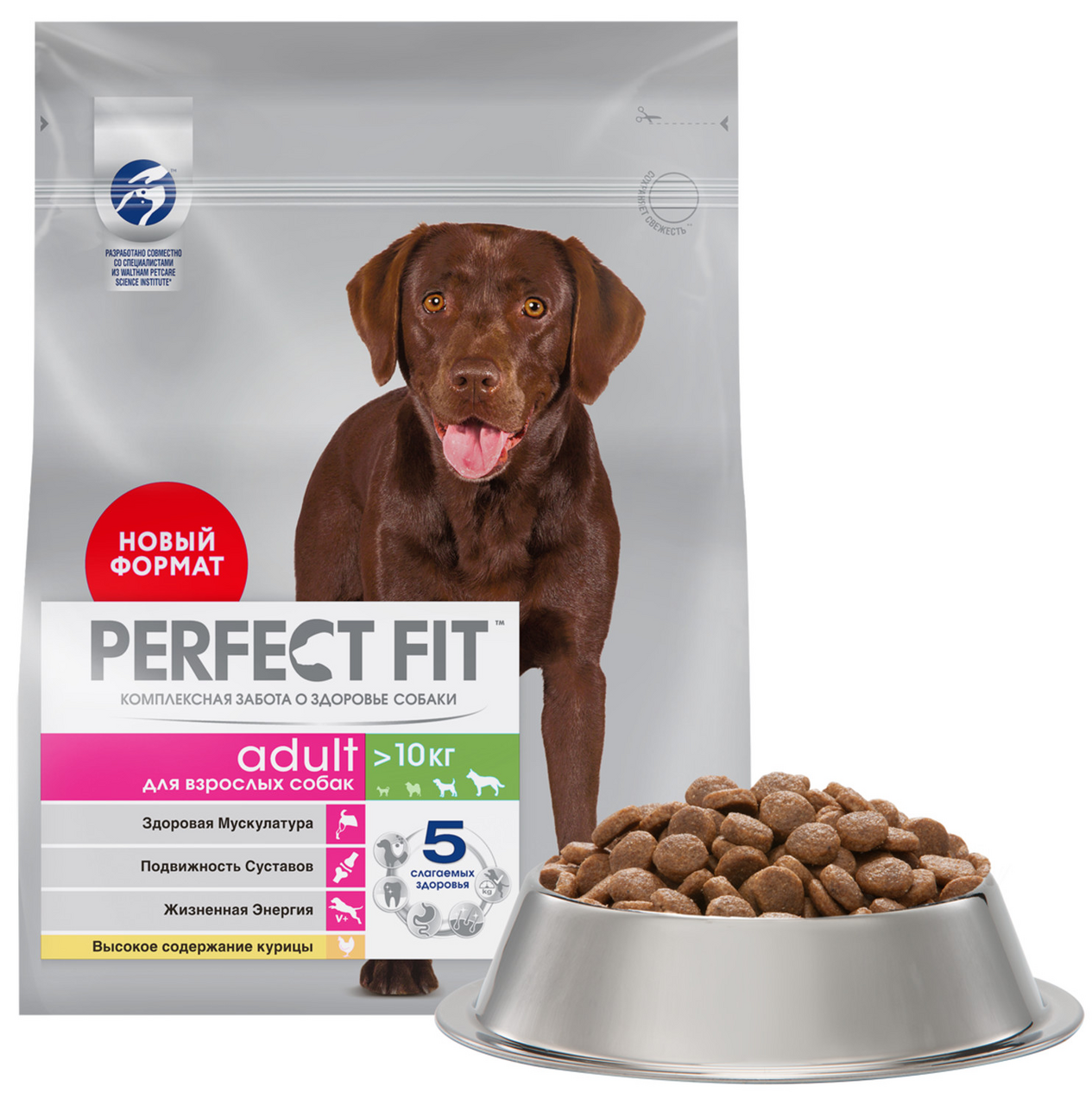 Сухой полнорационный корм PERFECT FIT™ для взрослых собак средних и крупных пород с курицей, 2.6кг